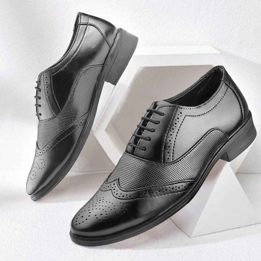 Dusk N Dazzling Black Brogue Shoes For Men